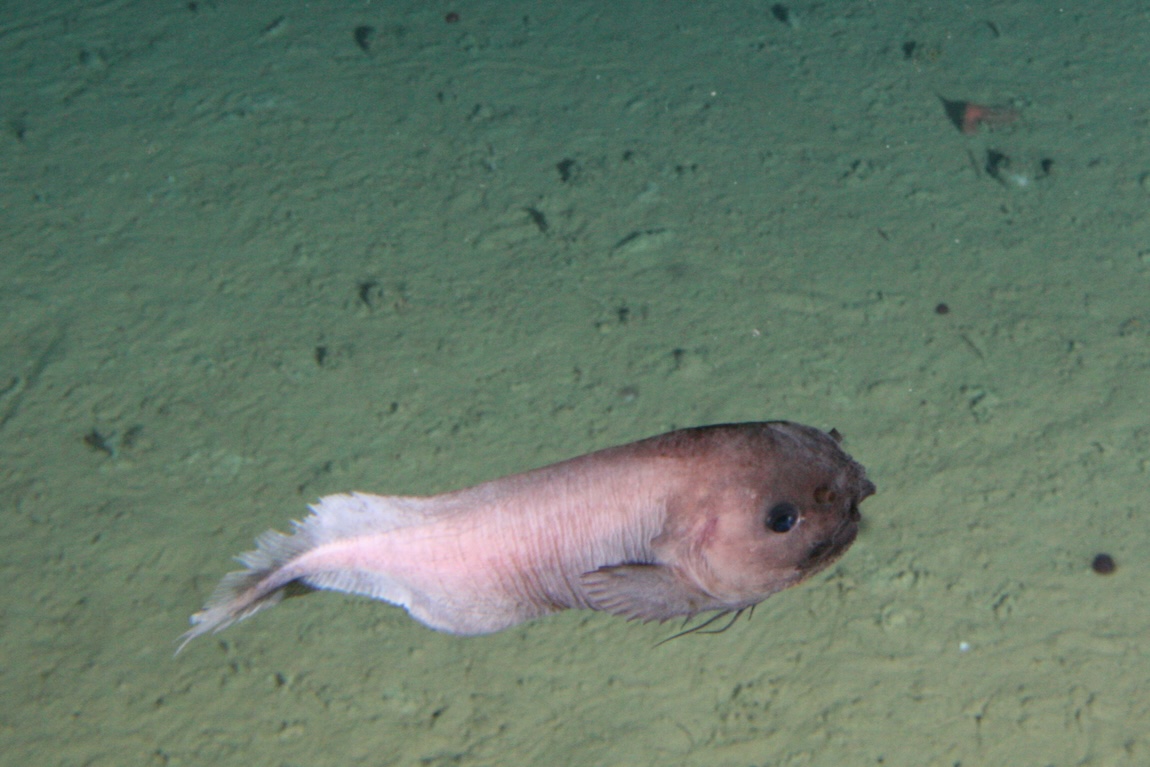 Most snailfishes (family Liparidae) live near the seafloor, riding the currents that sweep along the bottom. A hungry snailfish may swim against the currents to hover above the seafloor while searching for snacks buried in the mud. In some species, frilled fins probe the seafloor for hidden morsels of food.