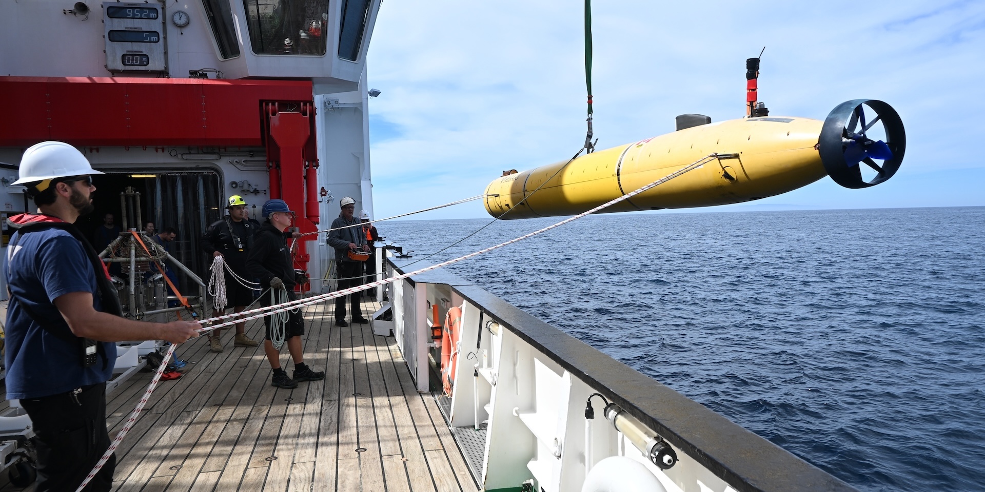 MBARI researchers join expedition to study fluid seeps offshore of Southern California MBARI scientists and engineers have joined an expedition led by the MARUM – Center for Environmental Sciences at the University of Bremen to study the cold seeps offshore of Southern California. These fluid seeps occur along fault zones and support unique communities of life.Aboard the German research vessel Sonne, an interdisciplinary team of researchers from MARUM, MBARI, Oklahoma State University, Oregon State University, Universidad Nacional Autónoma de México, and the University of California, Los Angeles will study the barium-rich cold seeps in the San Clemente Basin and examine their significance for fluid circulation along deep fault systems in the Earth’s crust. During the 30-day expedition, researchers will investigate the precise conditions that led to the formation of barite on the seabed and the distribution of these deposits along the 100-kilometer-long (62-mile-long) San Clemente Fault. The expedition team will use a pair of MBARI’s autonomous underwater vehicles to map fluid seeps in the San Clemente Basin, then use MARUM’s remotely operated vehicle MARUM-QUEST 5000 to study these geological features and their associated biological communities more closely.Read more from our collaborators at MARUM.Watch a livestream of expedition dives on MARUM’s YouTube channel.For additional information or images relating to this article, please email pressroom@mbari.org. Share Like this? Share it! Share on Facebook Share on Twitter Share on LinkedIn Share on Email