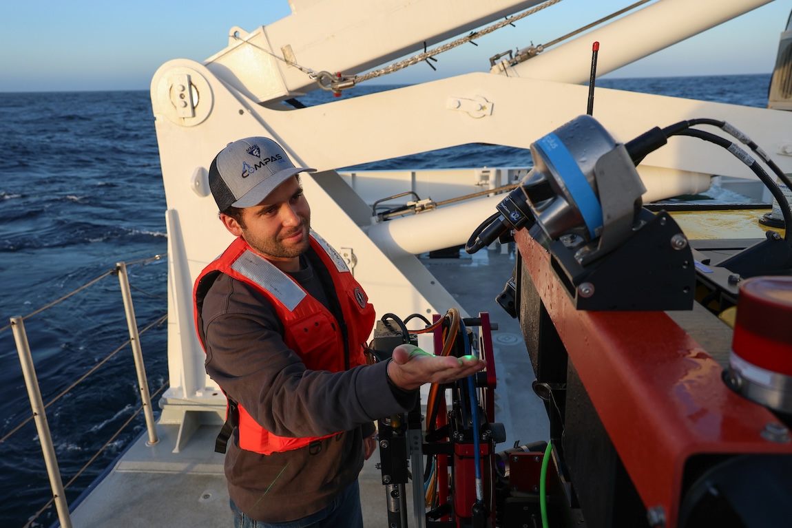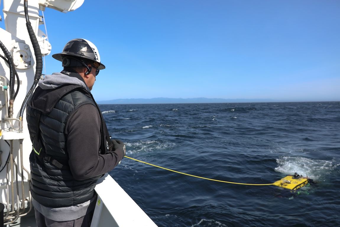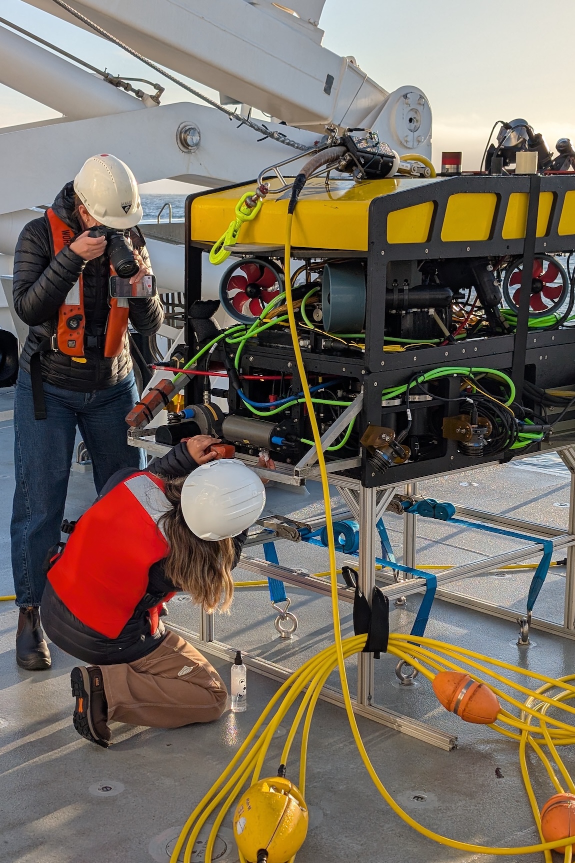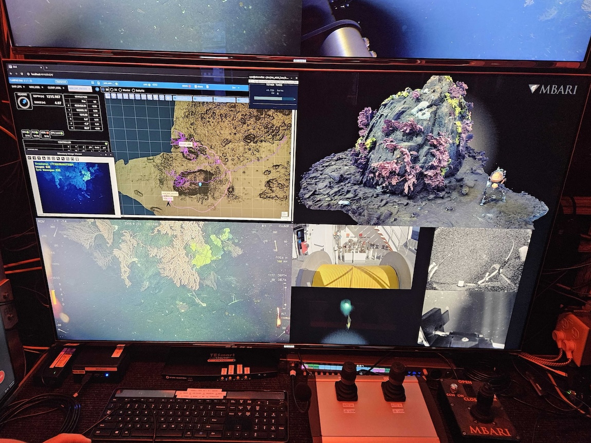Small, but mighty: Surveys at Sur Ridge prove the power of a portable ROV Expedition log by Graduate Fellow Javiera Fuentes Guíñez and Science Communication Fellow Marike PinsonneaultAfter several days of strong winds and heavy swell, the ocean finally settled enough on Sunday and Monday for the MiniROV team to return to our original dive site at Sur Ridge. We deployed the vehicle at a striking rock formation on the northern side of Sur Ridge, approximately 1,230 meters (4,035 feet) below the surface. MBARI has conducted extensive research at Sur Ridge, and we often revisit the same sites to understand how seafloor communities change over time. This particular rock formation was first encountered in 2017. Approximately 25 meters (82 feet) long, almost 10 meters (33 feet) tall, and covered in large corals, its size and scale impressed MiniROV pilot Frank Flores, who nicknamed it “Big Dinosaur Rock.” Despite strong currents near the seafloor, the MiniROV was able to conduct a successful mapping survey over steep, rugged terrain at Sur Ridge. Image: Giancarlo Troni © 2026 MBARISunday kicked off with a stunning sunrise—a good omen for the day ahead. The MiniROV successfully reached the seafloor, where the team began mapping surveys around the rock, exploring the site, and collecting forward-looking mapping data.As the dive progressed, currents along the ridge began to strengthen. The team adapted the plan, capturing imagery of the coral communities and collecting coral samples for Steve and rock samples for Olívia. The MiniROV and pilots pushed through the challenging conditions, testing the vehicle’s limits, but increasing currents and fiber connection issues ultimately led us to recover the vehicle early. Back on deck, work continued immediately: Scientists processed the samples while engineers prepared the vehicle for the next dive, resolving the connection issue and getting the MiniROV ready to head back into the deep. Monday brought strong currents once again at the seafloor, keeping the pilots busy as they maneuvered around Sur Ridge. Despite the conditions, we completed one full survey, 30 meters by 30 meters (about 100 feet by 100 feet) in steep, rugged terrain, and mapped nearly two-thirds of Big Dinosaur Rock. Each pass across the seafloor added another piece to the puzzle, showcasing the capability of the MiniROV and the determination of the expedition team to keep exploring the deep.Overall, the past few days have offered a valuable opportunity to better understand how the MiniROV performs in demanding scenarios. We’re pleased to see all of the CoMPAS Lab’s innovative tools and team working together so effectively. Tomorrow we head back to Moss Landing, with one final stop near MBARI at Portuguese Ledge to gather some final data along the way. Back on shore, a new phase begins—turning this data into insight, and laying the groundwork for our next return to Sur Ridge. Team Directory Aaron Micallef Senior Scientist/Marine Geologist CollaboratorsJong Kuk Hong (Korean Polar Research Institute), Young Keun Jin (Korean Polar Research Institute), Tae Siek Rhee (Korean Polar Research Institute), Scott Dallimore (Geological Survey of Canada). Mathieu Duchesne (Geological Survey of Canada) Share Like this? Share it! Share on Facebook Share on Twitter Share on LinkedIn Share on Email