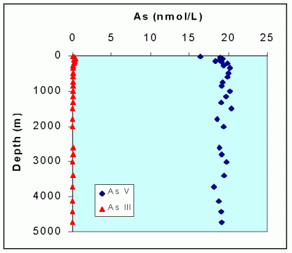 Arsenate (As V) and arsenite (As III) concentration profiles in the Atlantic.